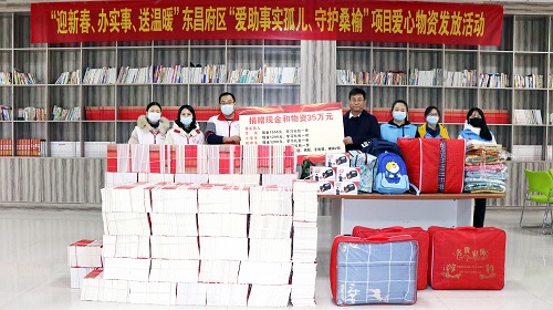 2022年1月27日上午11点,由东昌府区团委、聊城市爱心志愿者协会、聊城市公益顺风车志愿者协会联合举办“迎新春、办实事、送温暖”即“一对一关爱事实孤儿、为孤贫老人送温暖”项目爱心物资发放活动。东昌府区团委书记杨晓、团委副书记肖凤涛、杜士龙等领导参加启动仪式。